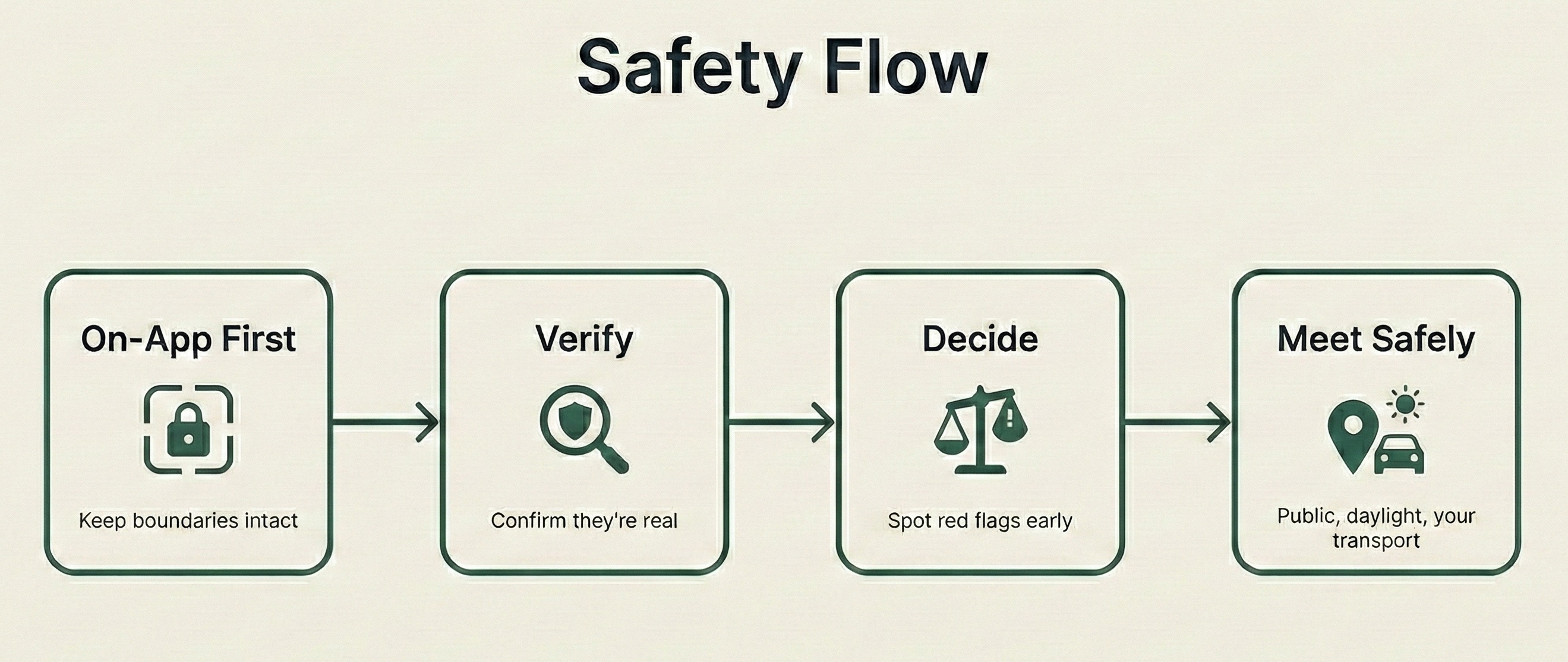 Move from chat → call → coffee date at your pace